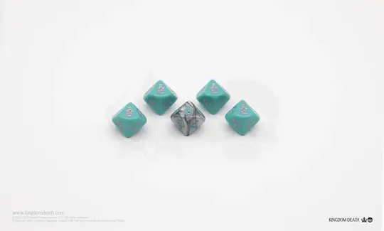 Набор из 9 кастомных кубиков Kingdom Death: Monster. Представлены в цветовой гамме Squires для вашей следующей кампании Monster или Squires of the Citadel.